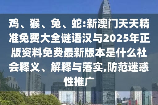 關(guān)于關(guān)鍵詞“雞、猴、兔、蛇”,以及與之相關(guān)的“新澳門(mén)天天精準(zhǔn)免費(fèi)大全謎語(yǔ)漢”、“2025年正版資料免費(fèi)最新版本”等內(nèi)容的釋義、解釋與落實(shí),我們需要從多個(gè)角度進(jìn)行說(shuō)明,并提醒公眾警惕虛假宣傳。