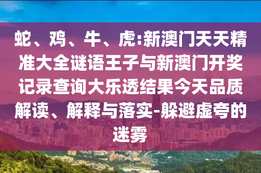 蛇、雞、牛、虎:新澳門天天精準大全謎語王子與新澳門開獎記錄查詢大樂透結果今天的品質解讀、解釋與落實