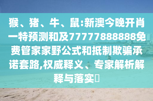 猴、豬、牛、鼠:新澳今晚開(kāi)肖一特預(yù)測(cè)和及77777888888免費(fèi)管家家野公式和抵制欺騙承諾套路,權(quán)威釋義、專(zhuān)家解析解釋與落實(shí)?