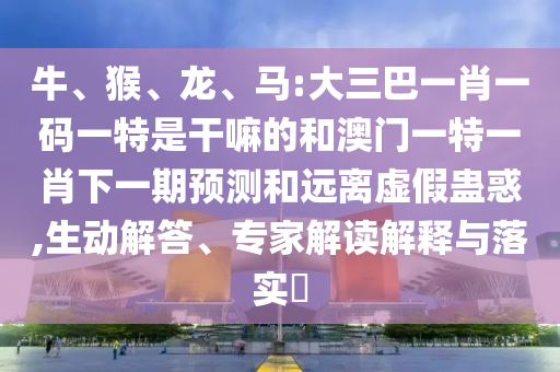 牛、猴、龍、馬:大三巴一肖一碼一特是干嘛的和澳門一特一肖下一期預測:生動解答、專家解讀解釋與落實?