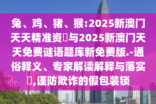 兔、雞、豬、猴與2025新澳門天天精準資料與免費謎語題庫”的通俗釋義、專家解讀與落實防范欺詐的假包裝鎖