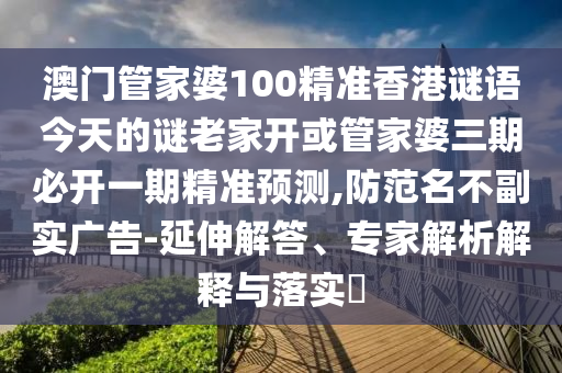 澳門管家婆100精準香港謎語今天的謎老家開或管家婆三期必開一期精準預測,防范名不副實廣告-延伸解答、專家解析解釋與落實?