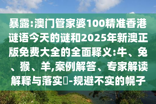 關于澳門管家婆100精準香港謎語今天的謎和2025年新澳正版免費大全的全面釋義、專家解讀與落實及警惕虛假宣傳——以牛、兔、猴、羊為例的案例分析