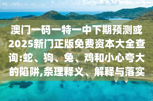 澳門一碼一特一中下期預測或2025新門正版免費資本大全查詢:蛇、狗、兔、雞和小心夸大的陷阱,條理釋義、解釋與落實
