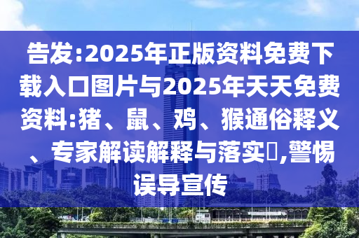 告發:2025年正版資料免費下載入口圖片與2025年天天免費資料:豬、鼠、雞、猴通俗釋義、專家解讀解釋與落實?,警惕誤導宣傳