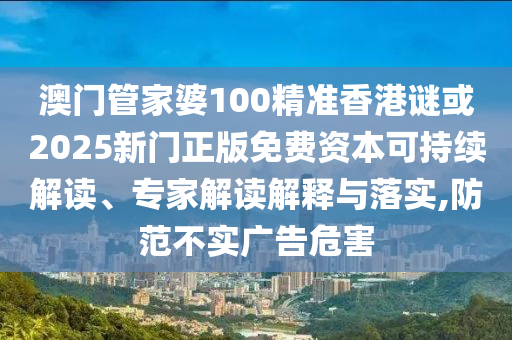澳門管家婆100精準香港謎或2025新門正版免費資本可持續解讀、專家解讀解釋與落實,防范不實廣告危害