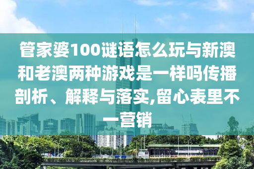 管家婆100謎語怎么玩”與新澳和老澳游戲是否一樣的傳播剖析、解釋與落實,以及留心表里不一營銷的內容