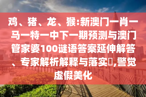 關于雞、豬、龍、猴:新澳門一肖一馬一特一中下一期預測與澳門管家婆100謎語答案延伸解答、專家解析解釋與落實及警覺虛假美化的全面解析