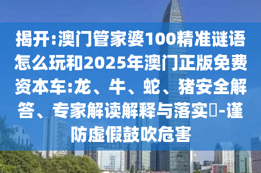 揭開:澳門管家婆100精準謎語怎么玩和2025年澳門正版免費資本車:龍、牛、蛇、豬安全解答、專家解讀解釋與落實?-謹防虛假鼓吹危害