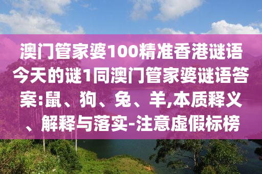 關于澳門管家婆100精準香港謎語“今天的謎1”以及澳門管家婆謎語答案中提到的鼠、狗、兔、羊的本質釋義、解釋與落實,同時警惕虛假宣傳的問題,以下是從多個角度進行的全面解析。