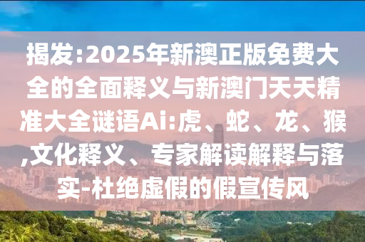 揭發(fā):2025年新澳正版免費(fèi)大全的全面釋義與新澳門天天精準(zhǔn)大全謎語Ai:虎、蛇、龍、猴,文化釋義、專家解讀解釋與落實(shí)-杜絕虛假的假宣傳風(fēng)