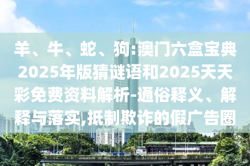 羊、牛、蛇、狗:澳門六盒寶典2025年版猜謎語和2025天天彩免費資料解析-通俗釋義、解釋與落實,抵制欺詐的假廣告圈