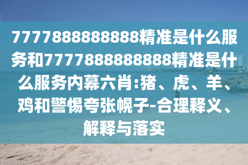 摘要:,,7777888888888精準服務”,它可能是一種提供特定服務或產品的宣傳口號或數字代碼,具體含義可能因上下文而異。關于該服務內幕涉及生肖如豬、虎、羊、雞等,應警惕夸張宣傳,確保合理釋義、解釋和落實。由于缺乏具體信息,難以準確描述其內容和性質。建議進一步了解相關背景信息,謹慎對待此類服務。