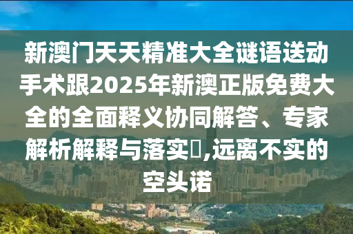 新澳門天天精準大全謎語送動手術跟2025年新澳正版免費大全的全面釋義協同解答、專家解析解釋與落實?,遠離不實的空頭諾