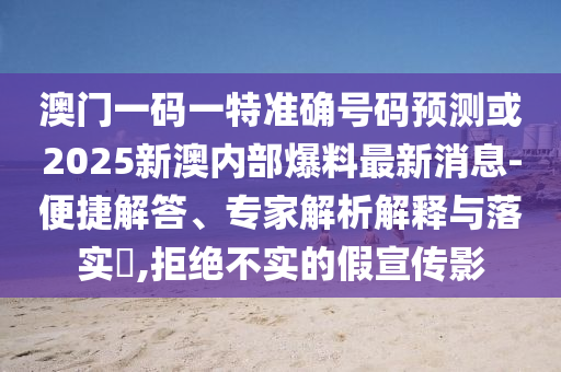 澳門一碼一特準確號碼預測或2025新澳內部爆料最新消息-便捷解答、專家解析解釋與落實?,拒絕不實的假宣傳影