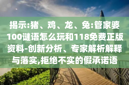 揭示:豬、雞、龍、兔:管家婆100謎語怎么玩和118免費正版資料-創新分析、專家解析解釋與落實,拒絕不實的假承諾語