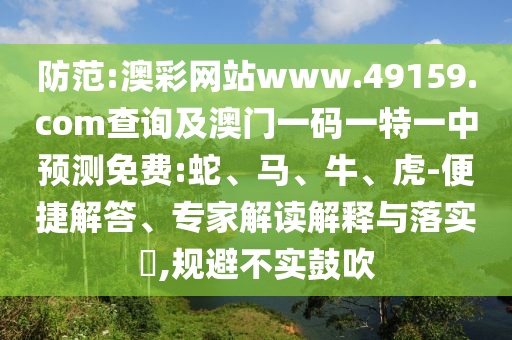 防范:澳彩網(wǎng)站www.49159.соm查詢及澳門一碼一特一中預測免費:蛇、馬、牛、虎-便捷解答、專家解讀解釋與落實?,規(guī)避不實鼓吹