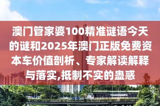 澳門管家婆100精準謎語今天的謎和2025年澳門正版免費資本車價值剖析、專家解讀解釋與落實,抵制不實的蠱惑