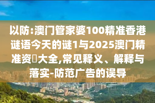澳門管家婆100精準香港謎語今天的謎1與2025澳門精準資枓大全:常見釋義、解釋與落實