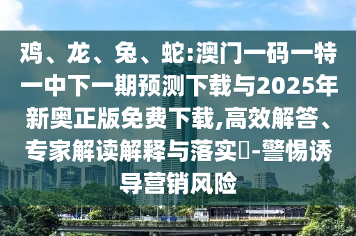 雞、龍、兔、蛇:澳門一碼一特一中下一期預(yù)測下載與2025年新奧正版免費下載,高效解答、專家解讀解釋與落實?-警惕誘導(dǎo)營銷風(fēng)險